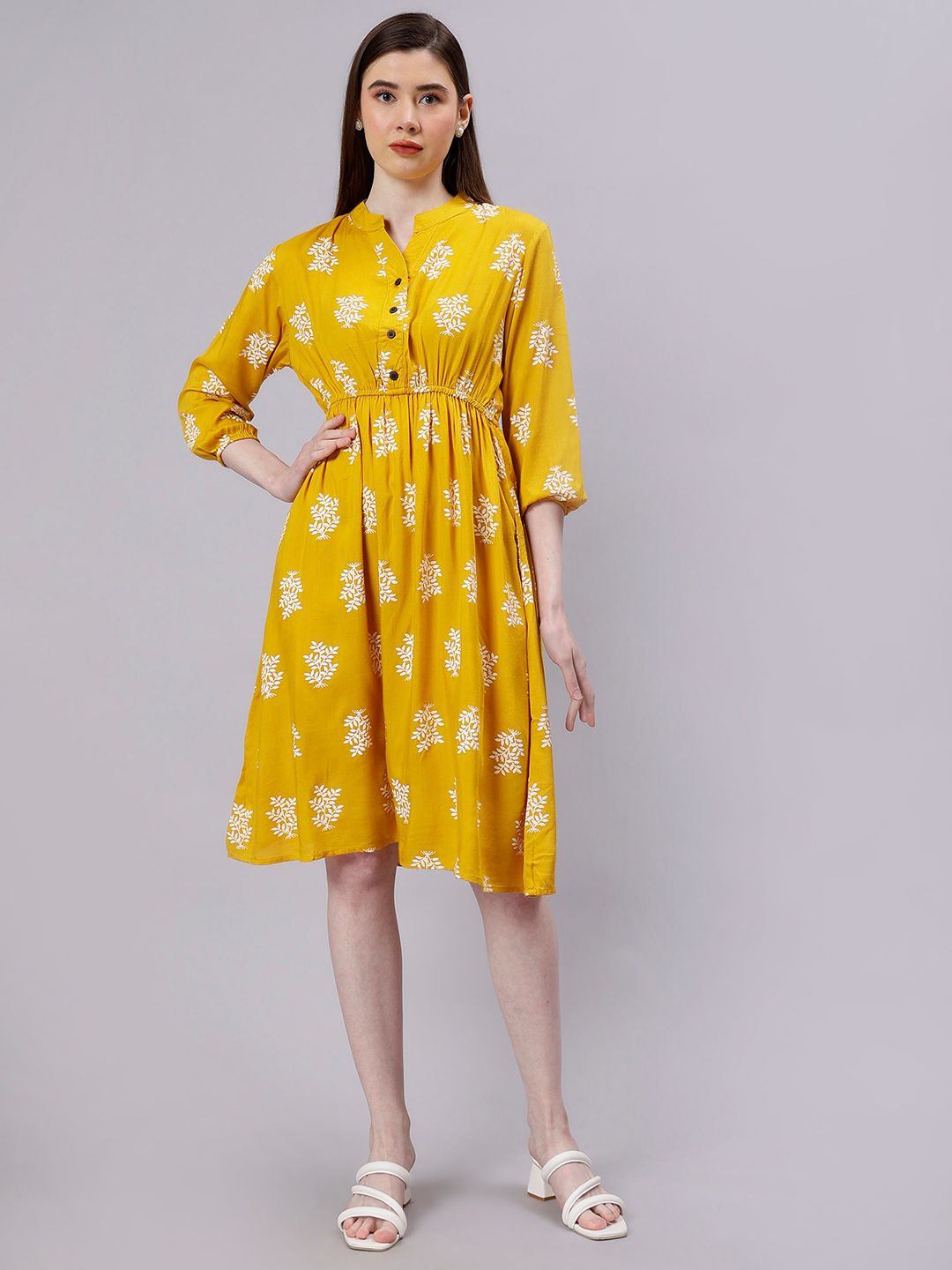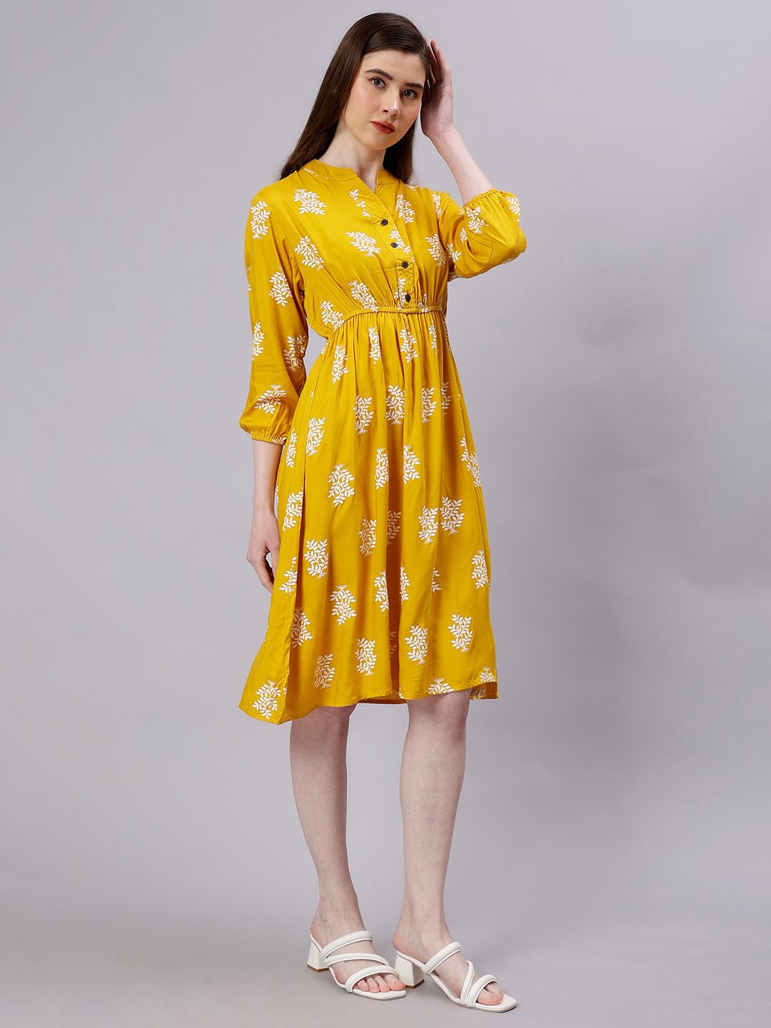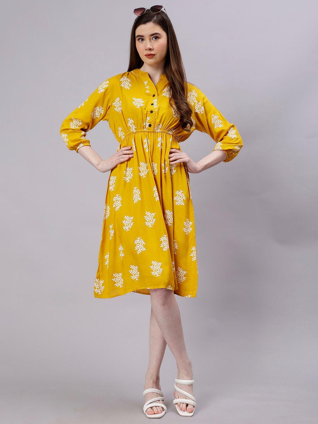 ENTELLUS Floral Print Cotton Fit & Flare Dress