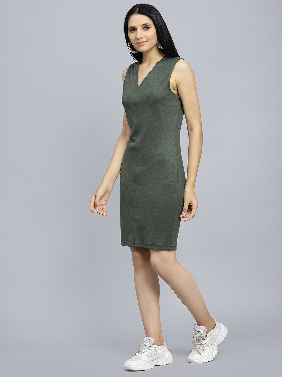 ENTELLUS V-Neck Sleeveless Cotton Sheath Dress